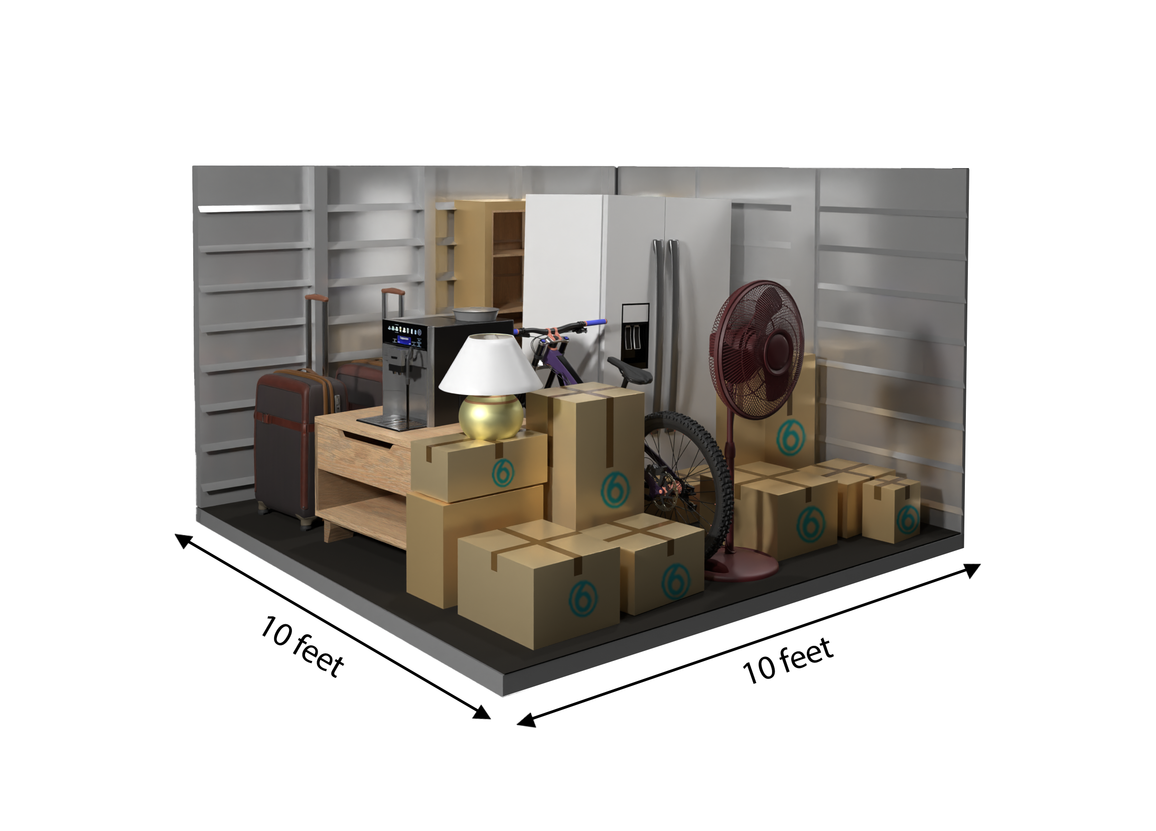 This 100 sq ft storage unit is roughly the size of a standard bedroom, offering space for the contents of a one- to two-bedroom apartment. It can hold larger furniture, appliances, and multiple boxes—perfect for moving, downsizing, or storing extra inventory for your business.